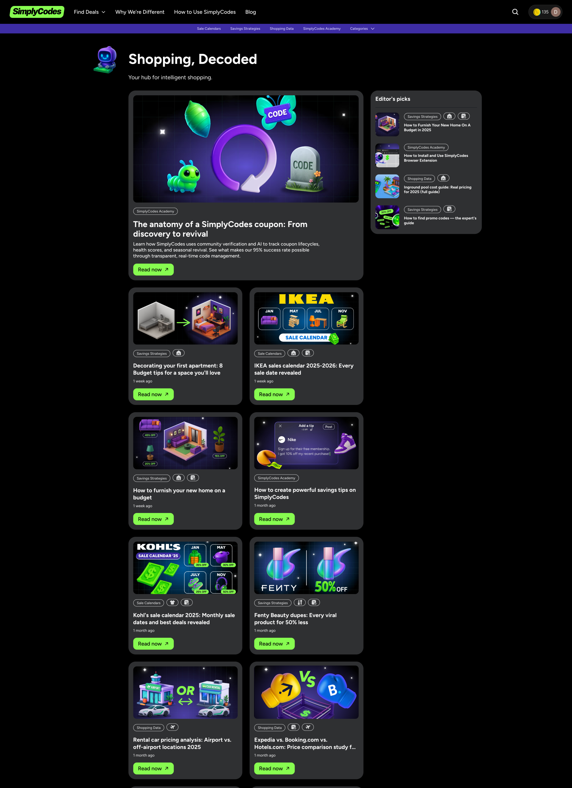 The new homepage flipped the old model completely. Instead of "Download first, value maybe," we SHOW everything upfront without TELING: live codes with real verification success rates, actual savings, and most importantly, the community in action. No signup walls. No barriers. Just instant proof that more than 9M people are helping each other save. The design makes one thing clear: saving money isn't a lonely guessing game anymore. It's something people do together. SimplyCodes is now the only platform where the community powers the savings, and where the design celebrates every human contribution.