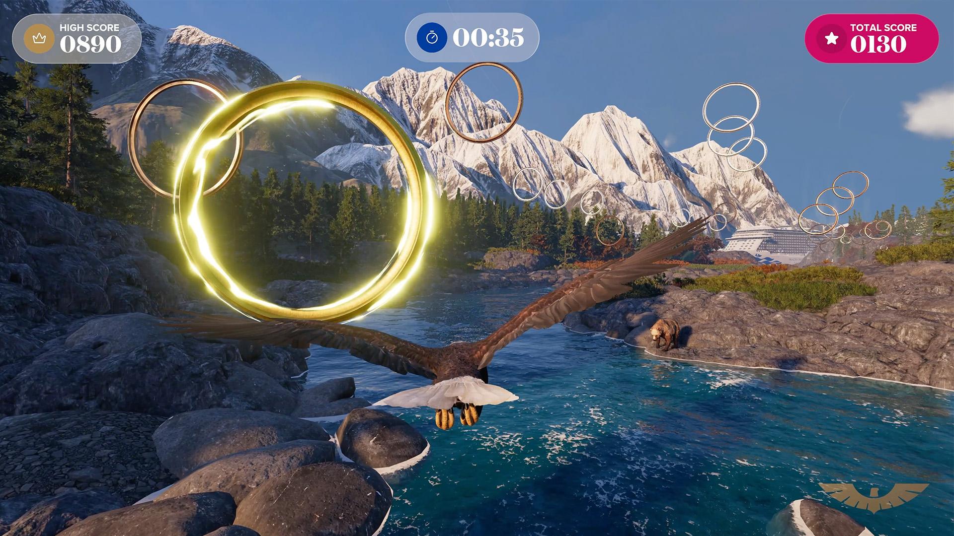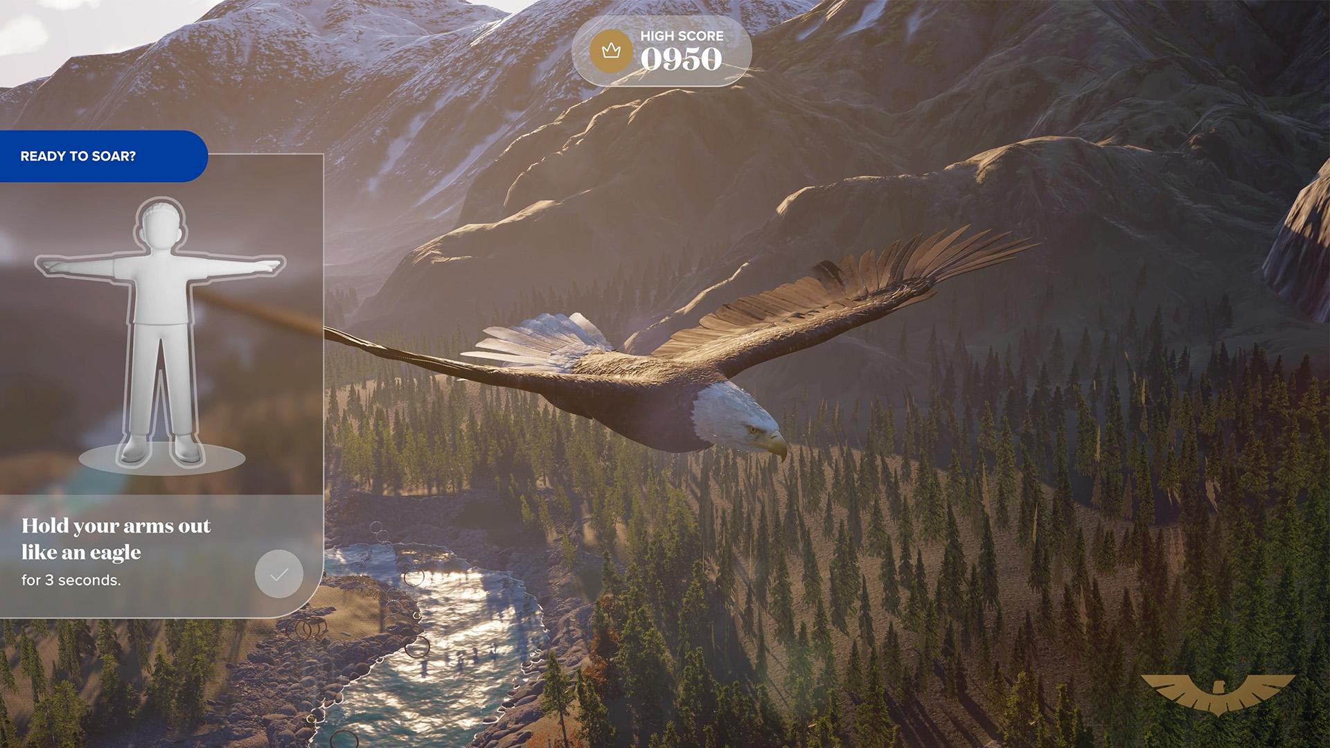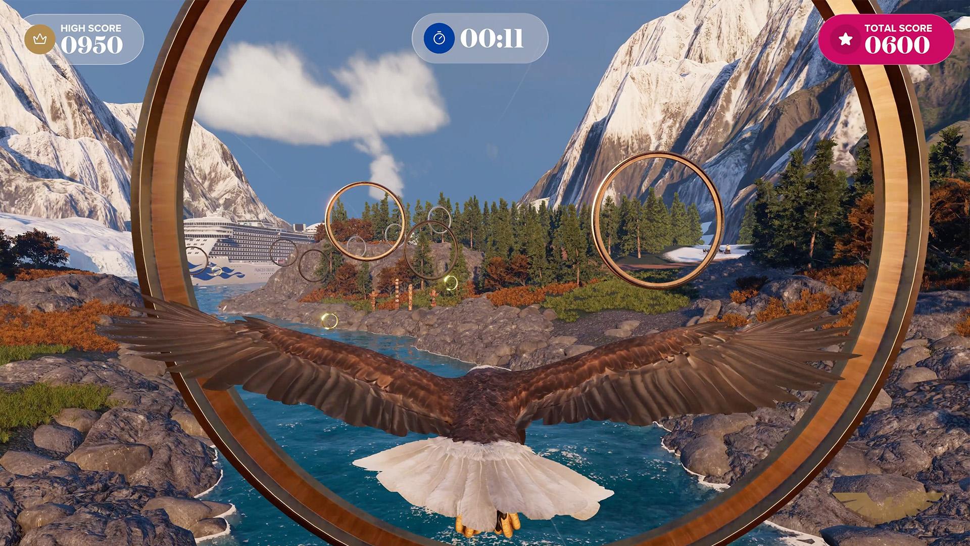 Princess Cruises and Groove Jones collaboratively introduced Eagle Quest Alaska. This immersive, controller-free flight simulation experience transports guests into the majestic skies of Southeast Alaska aboard multiple cruise ships. Powered by computer vision and full body motion tracking, this experience invites travelers of all ages to embody a bald eagle—flapping, tilting, and diving with only their own body movements, with absolutely no physical controllers required .