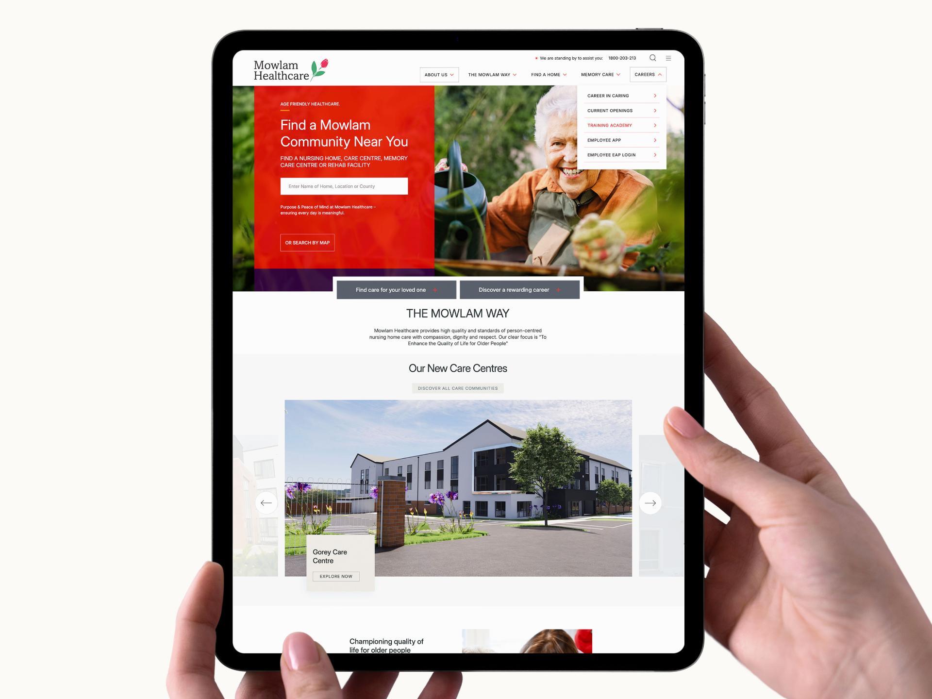 Mowlam Healthcare is Ireland’s largest and most trusted provider of private nursing home and specialist memory care. Their website is a vital gateway for families seeking clarity, reassurance, and support during some of life’s most emotional decisions AND a key gateway for the recruitment of new personnel. Copper Reed was commissioned to completely redesign MowlamHealthcare.com to create a modern, intuitive, and resident-focused digital experience that reflects the organisation’s values of compassion, dignity, and clinical excellence.