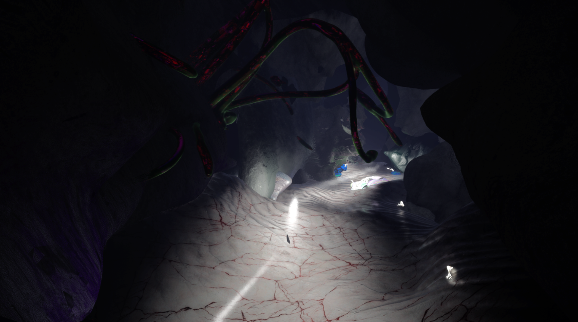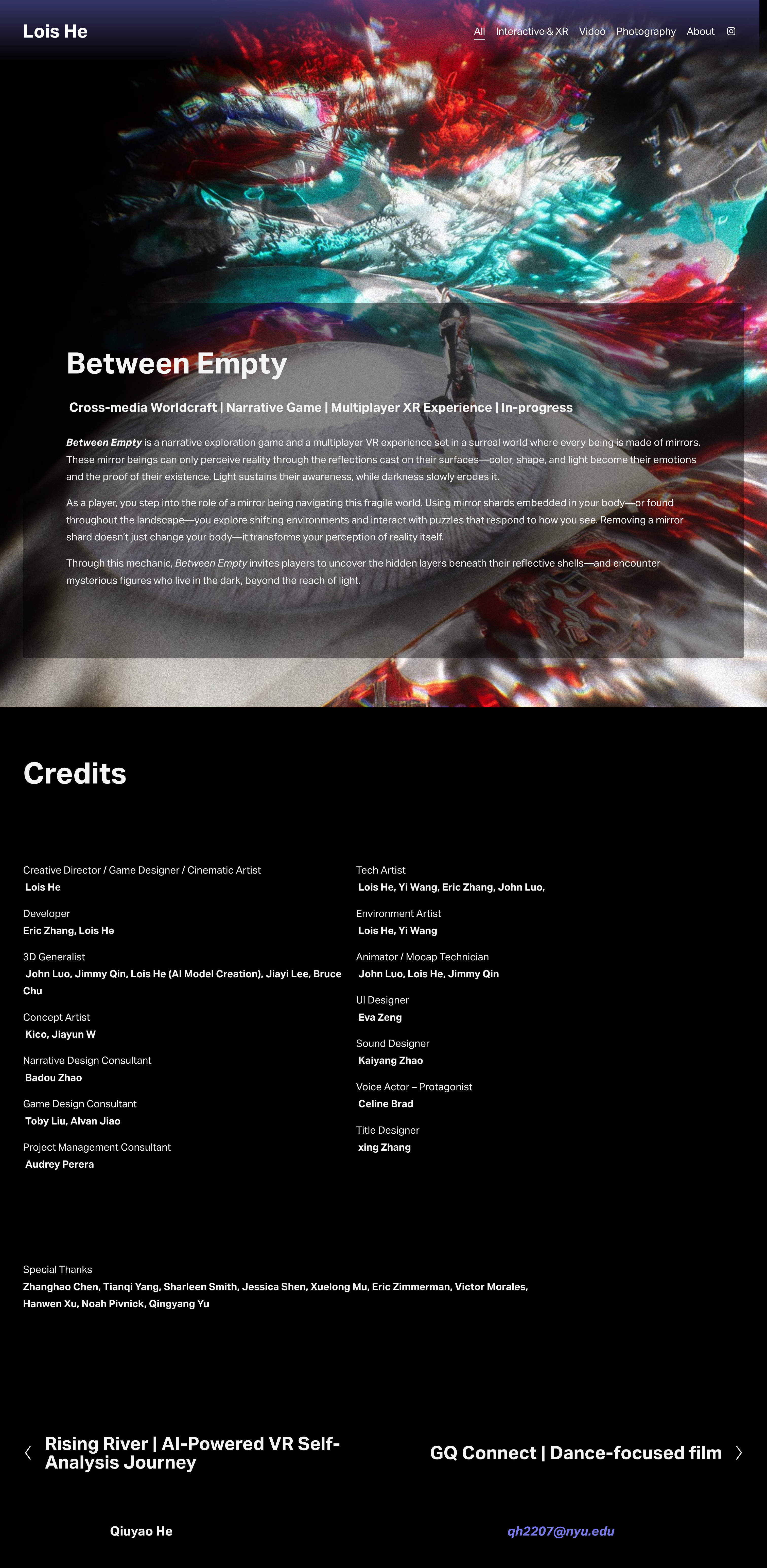 Between Empty is a narrative game set in a surreal world where every being is made of mirrors. These mirror beings can only perceive reality through the reflections cast on their surfaces—color, shape, and light become their emotions and the proof of their existence. Light sustains their awareness, while darkness slowly erodes it.