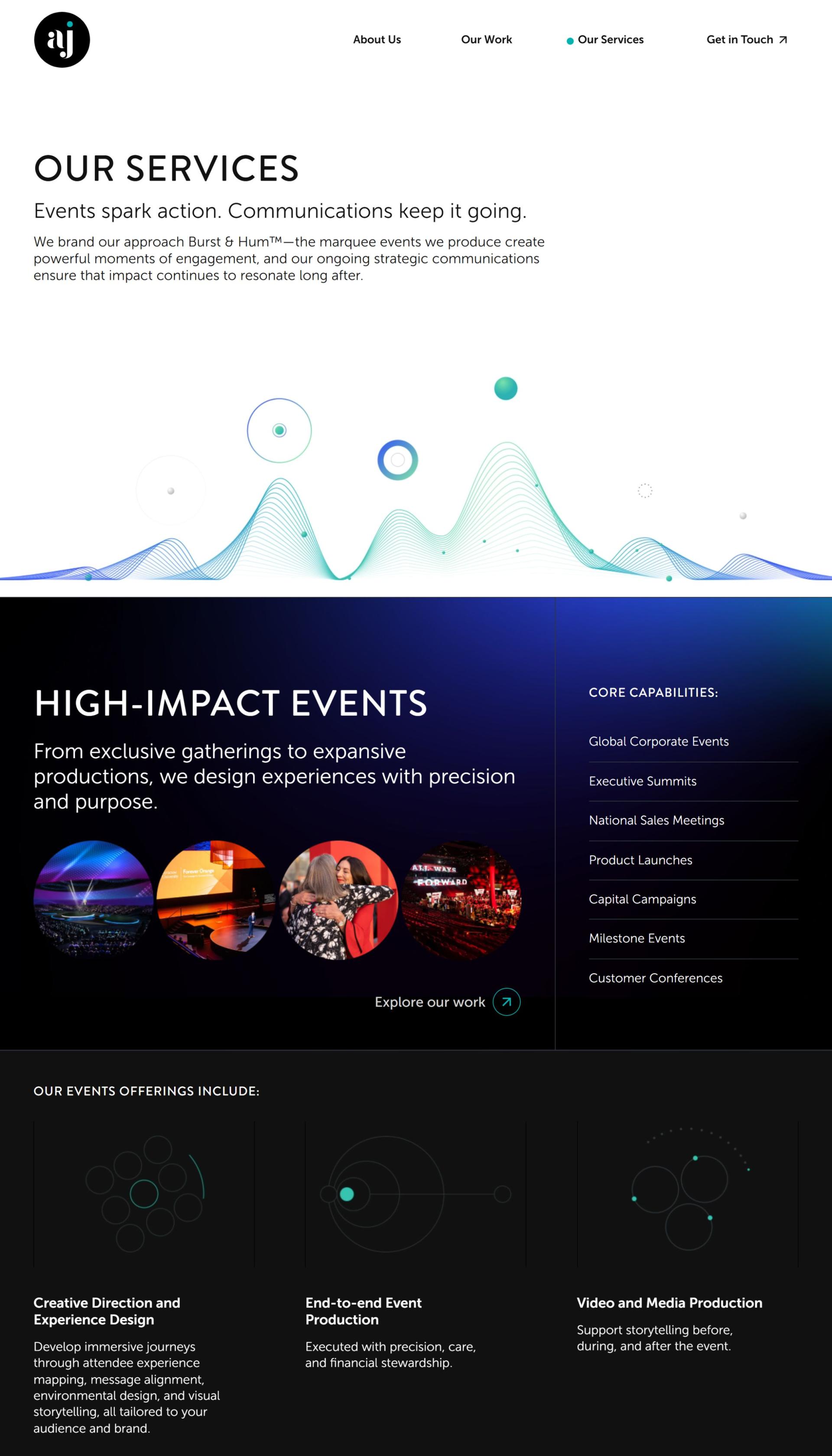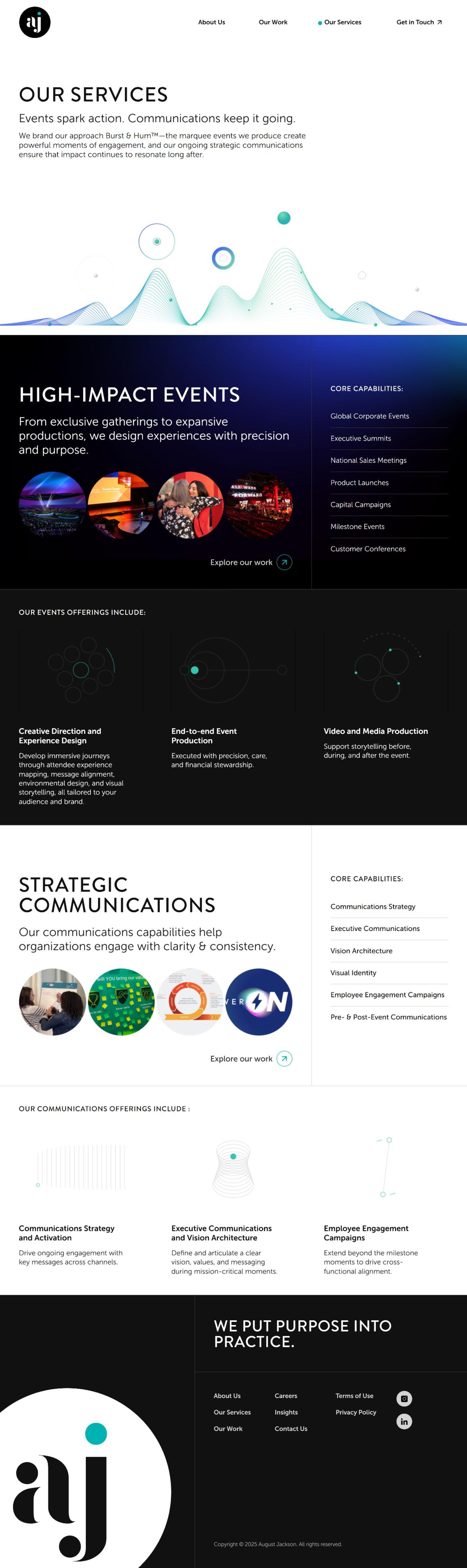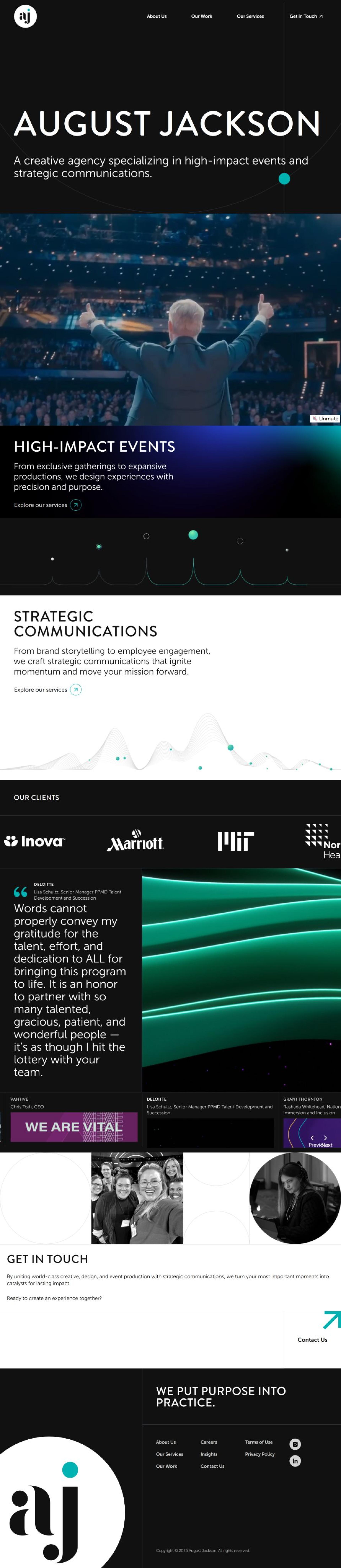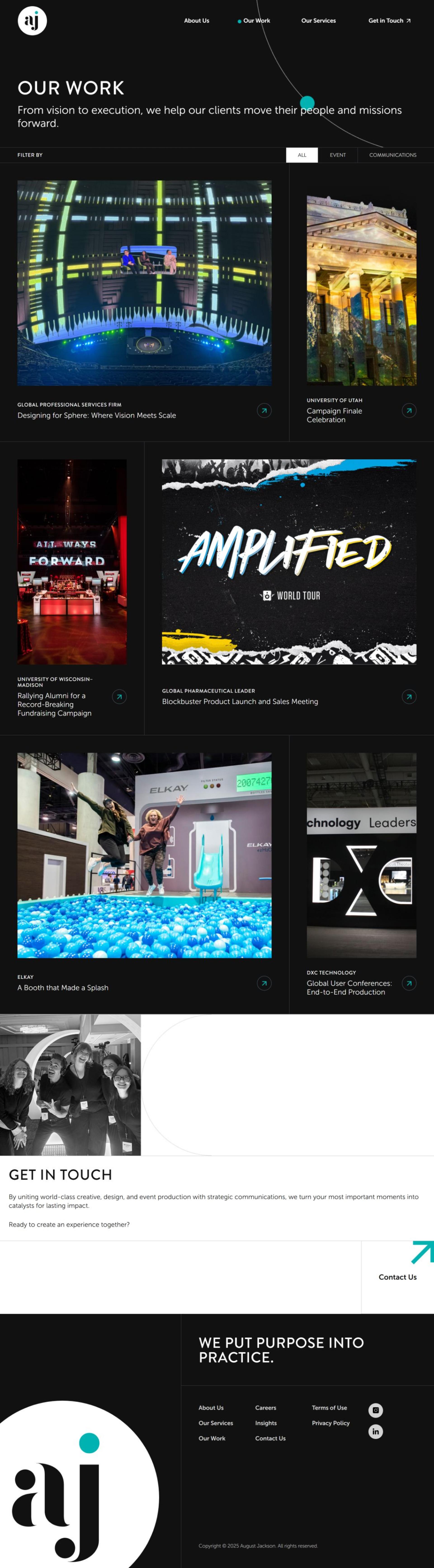 The newly launched August Jackson website serves as a powerful showcase of the agency’s expertise in creating unforgettable moments of engagement through events and strategic communications. The site’s dynamic design, highlighted by vibrant imagery and interactive components, perfectly encapsulates the agency's creativity and its ability to design, execute, and promote impactful events for clients.