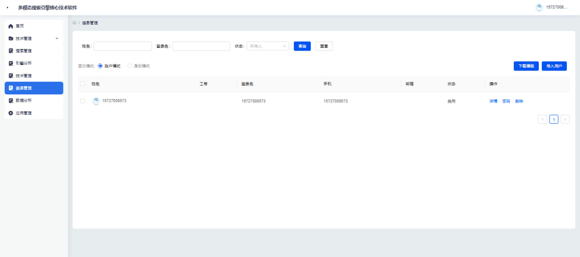 Multimodal Search Engine Core Technology System is designed to enhance intelligent search and data analysis by integrating Natural Language Processing (NLP), Message Queue, WebService, and SOA Service Bus technologies. It supports multimodal search, enabling users to input and retrieve data through text, voice, and image processing. The software provides smart data interaction and analysis, including interactive analytics, comprehensive insights, and language management, with visualization tools like line charts, pie charts, and bar charts. Built on a distributed system architecture, it leverages Message Queue technology for efficient data transmission and high concurrency, while the SOA Service Bus ensures seamless integration with various systems. To maintain security and access control, it incorporates role-based system permission management, supporting roles such as Super Administrator, Application Administrator, Operation Administrator, and Data Maintenance Administrator. The platform also features content management, device management, and interaction management, optimizing data storage, retrieval, and controlled access, while caching mechanisms and load balancing enhance performance. Additionally, it supports software deployment, role management, and system maintenance, ensuring long-term stability and reliability.