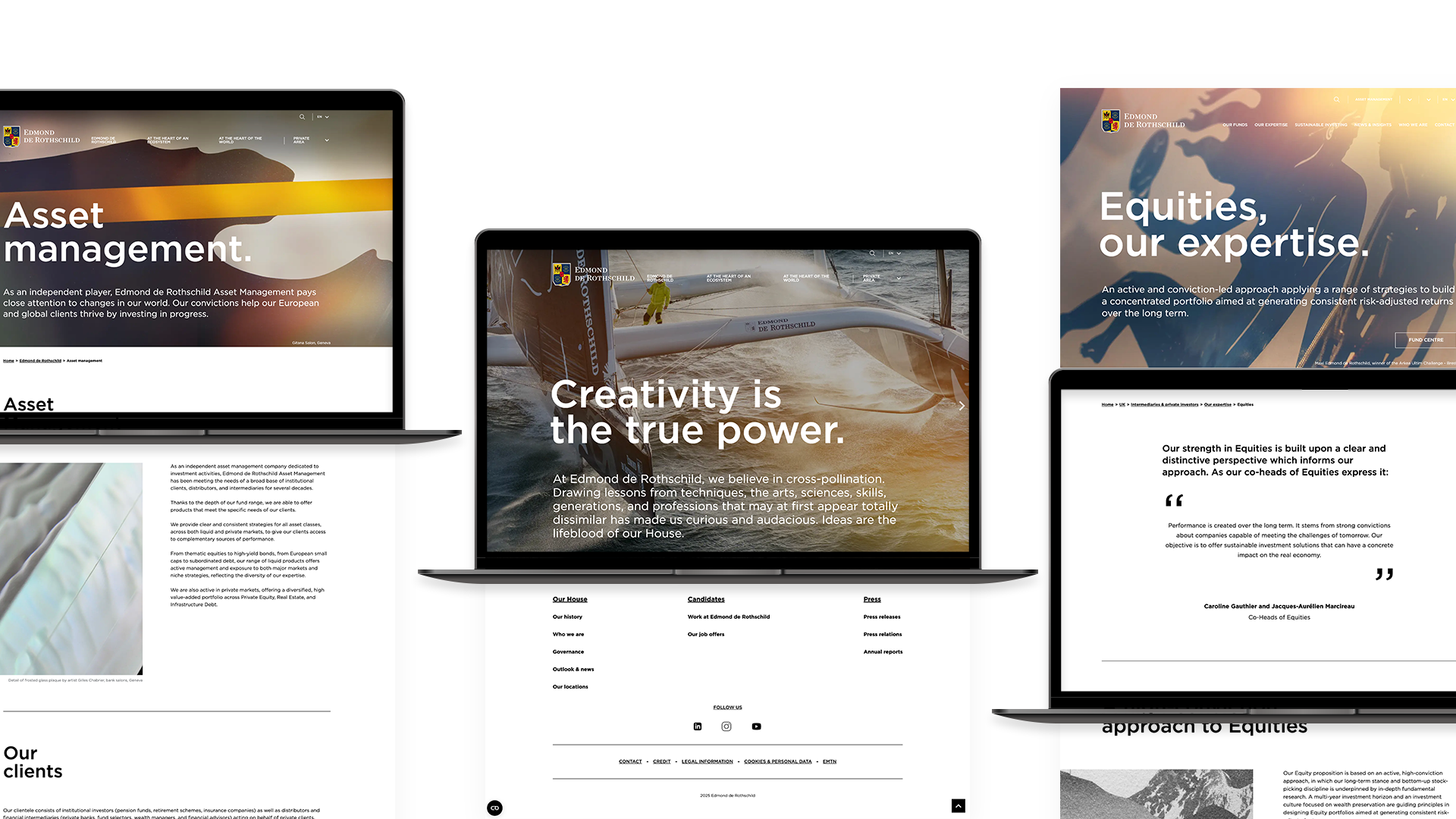 Edmond de Rothschild, a French multinational bank and asset manager, required a digital transformation to align its global strategy with regional needs while enhancing user experience and localisation across their digital estate. The project involved creating a standalone Asset Management (AM) website for 12 regions and then overhauling the corporate site that focuses on broader group services (Private Banking, Sustainability, and more). The transformation required multi-lingual support for 6 languages, tailored user pathways, and marketing autonomy – across over 40 websites in total. Embrace designed and built both primary estates on Umbraco CMS, leveraging its robust security and scalable, modular architecture to streamline development and ensure flexibility in future. The AM site features audience-specific pathways for Institutional Investors and Intermediaries, and the corporate site reuses design elements to maintain brand consistency. Rigorous security measures, including Microsoft Azure and Cloudflare, ensure enterprise-grade protection. Umbraco Workflow provides improvements to digital operations and publishing, Umbraco Engage allows for real-time content personalisation and analytics, and Google Analytics provides additional valuable audience insights. The user-centric digital transformation has resulted in enhanced website experiences for all markets and has enabled impressive increases to visitors, user engagement, and search discoverability through localised content. Additionally, the transformation achieved further objectives by streamlining digital operations, enhancing personalisation, and providing reusable modules for the future, all while seamlessly integrating the group’s new brand identity. The transformation successfully enabled Edmond de Rothschild to meet diverse regional markets and audience needs, while driving significant global business growth across both digital estates.