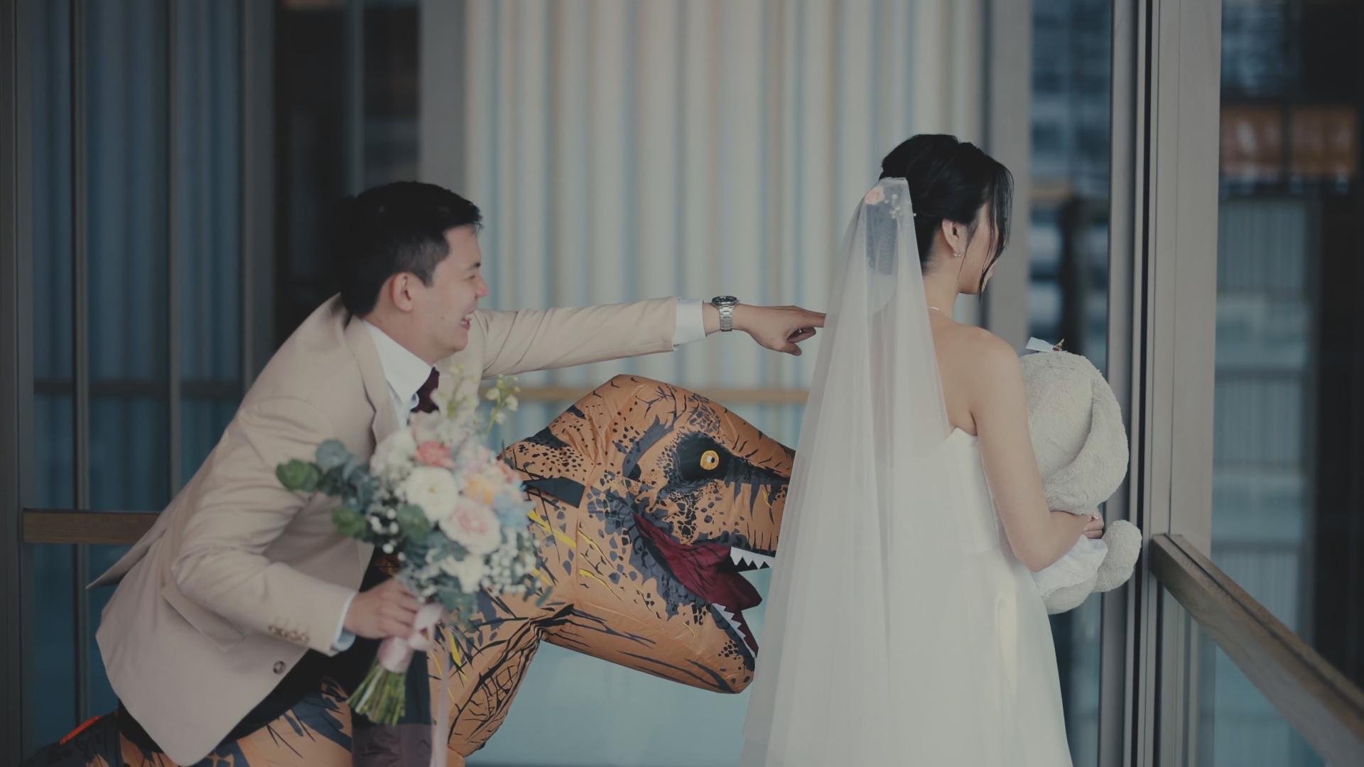 It all started with a dare. Celine asked Zachery if he was game enough to wear a dinosaur suit to the wedding. He delivered! Relive the best moments of the wedding day with the most romantic of vows and the best wedding team! Despite being a lunch wedding banquet, we were still able to deliver this video for showcase earlier than expected.