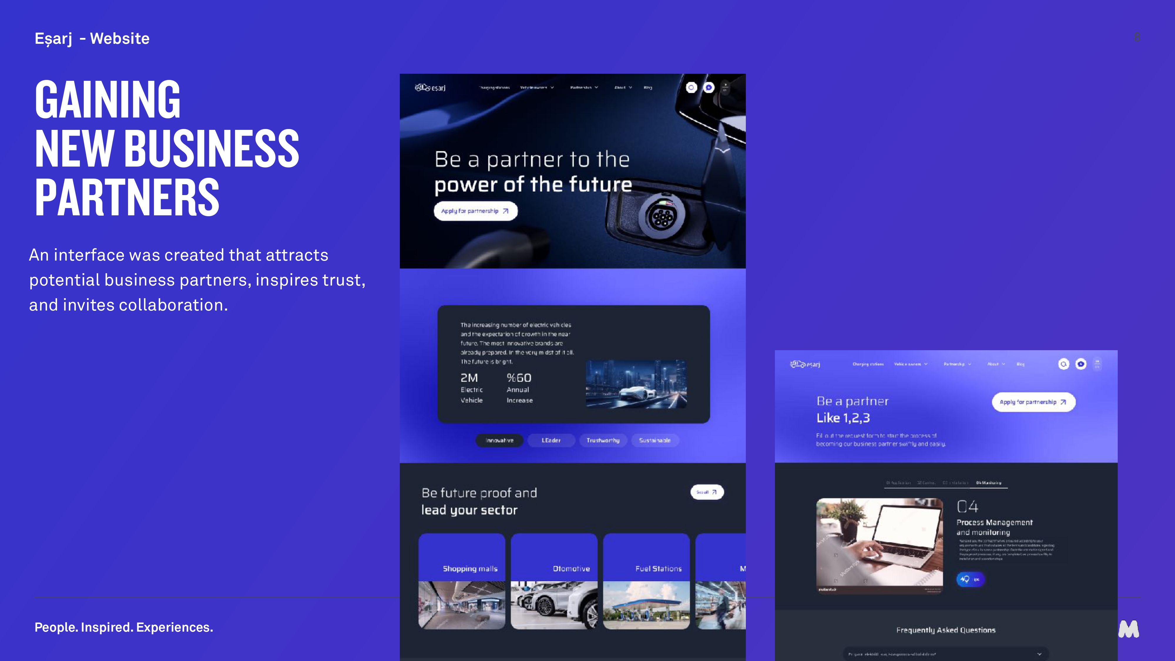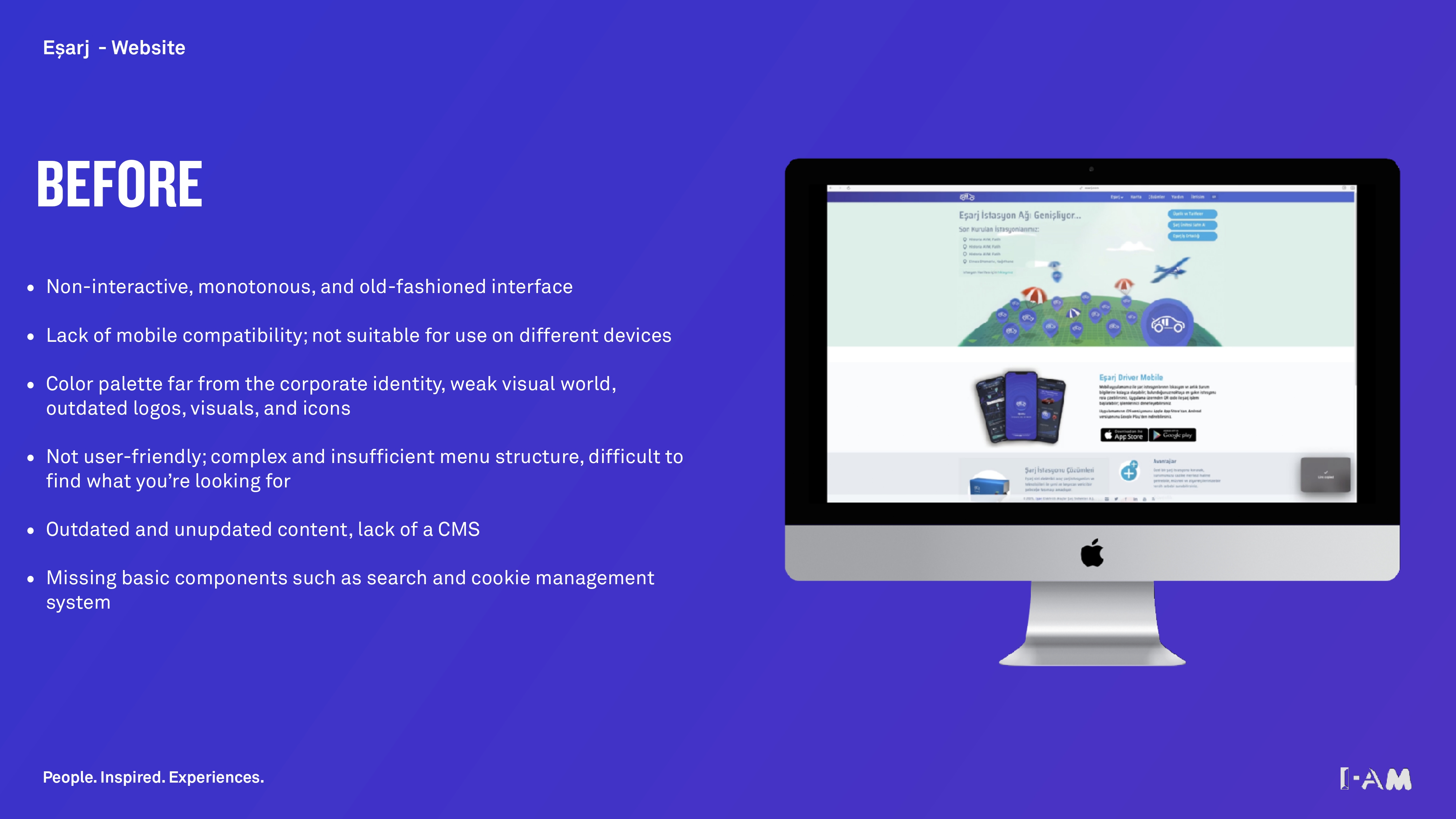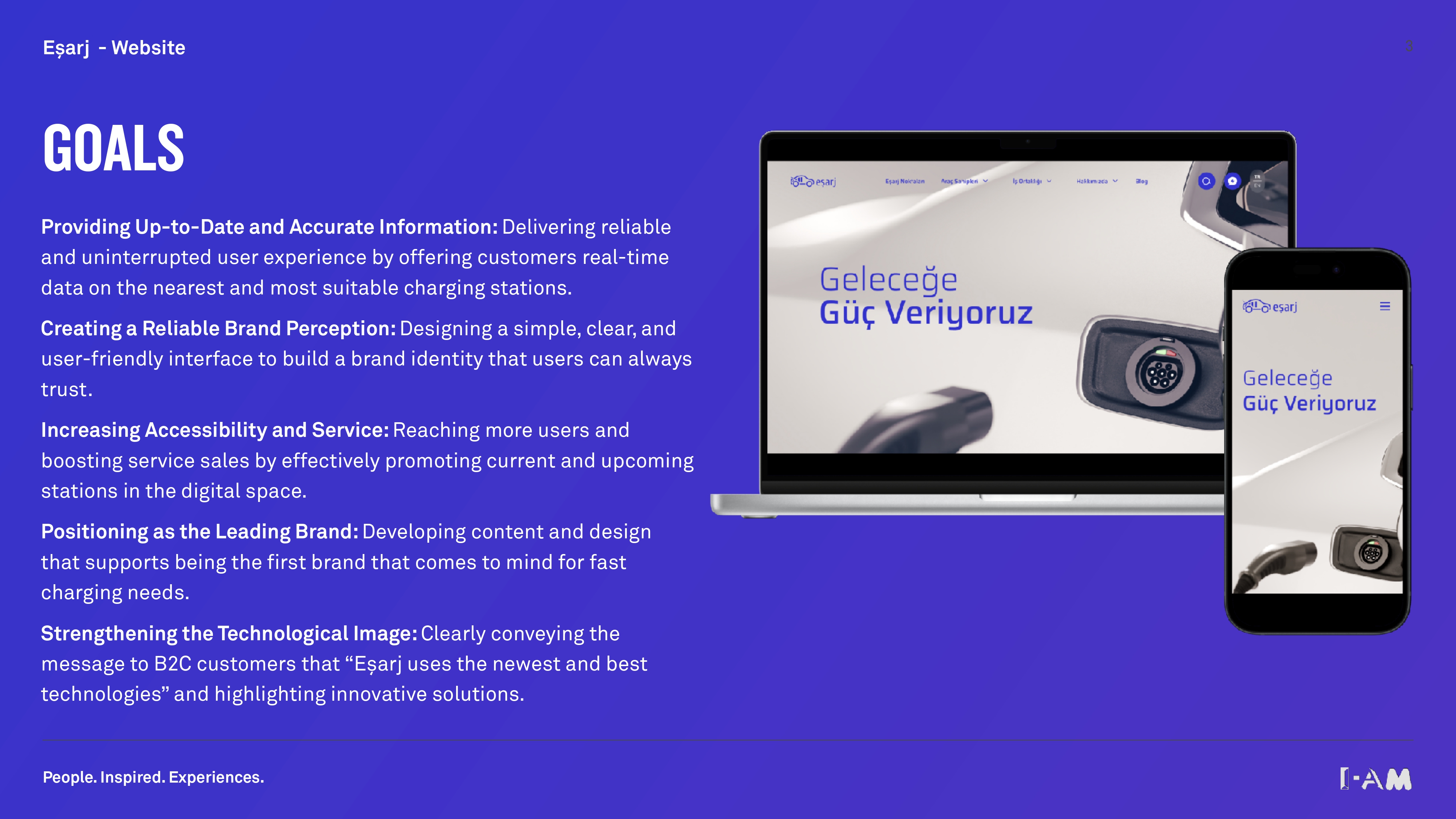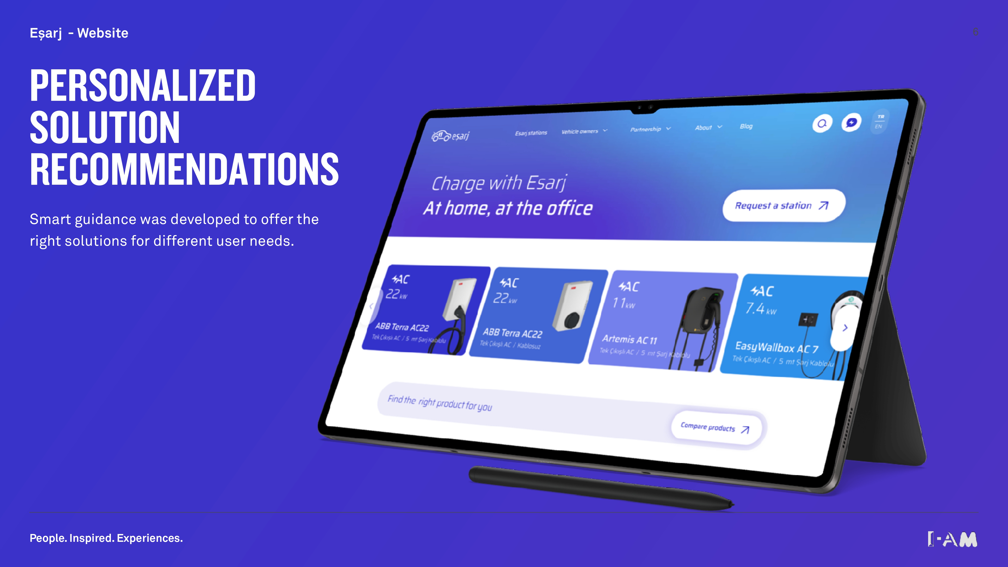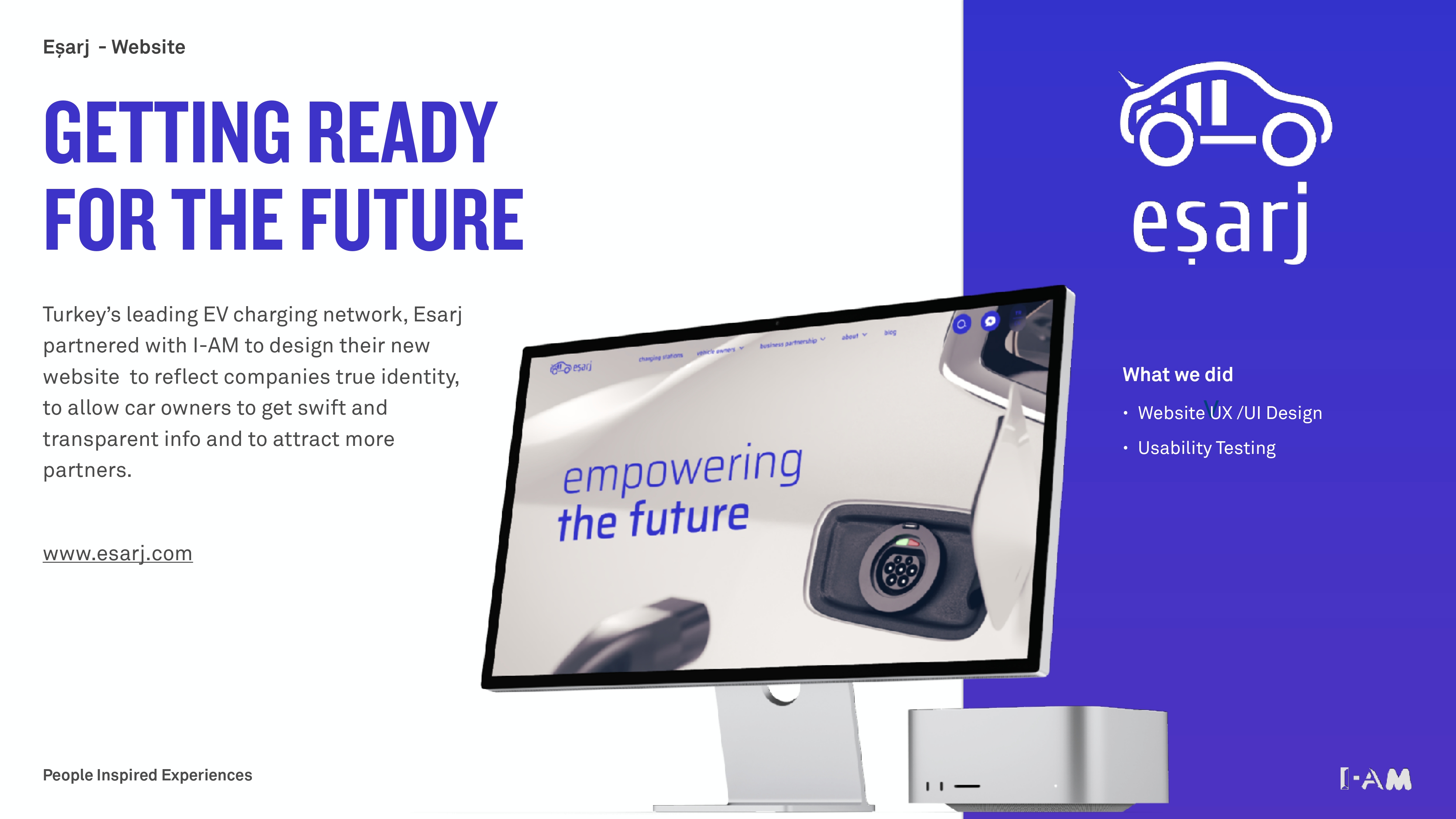 Eşarj, Türkiye’s leading electric vehicle charging network, partnered with global experience design agency I-AM to completely transform its digital presence. The goal was to create a website that matches the brand’s leadership in fast-charging technology, reflects its innovative spirit, and delivers a seamless user experience across all devices. The previous website was static, outdated, and lacked user-focused functionality. Through comprehensive research, including user surveys and site analysis, the new platform was reimagined from the ground up. The information architecture was simplified, navigation was made intuitive, and the visual language was redesigned to align with Eşarj’s dynamic and technology-driven identity. Key features include: Interactive Station Map: Enables users to instantly locate the nearest charging point and see its availability. Knowledge-Driven Tools: “How long does it take to charge?” and “How much does it cost?” calculators help educate EV owners. A blog page is created to inform EV users more about the sector and related cutting-edge technologies. Business Partner Hub: A dedicated, professional section designed to attract and convert potential partners. Mobile-First Approach: Optimized for flawless performance across devices. The result is a platform that not only provides real-time, reliable information but also strengthens Eşarj’s position as the most trusted, forward-thinking name in sustainable mobility. This new website is more than a digital upgrade — it is a powerful brand experience designed to support Eşarj’s mission of driving the transition to clean transportation.