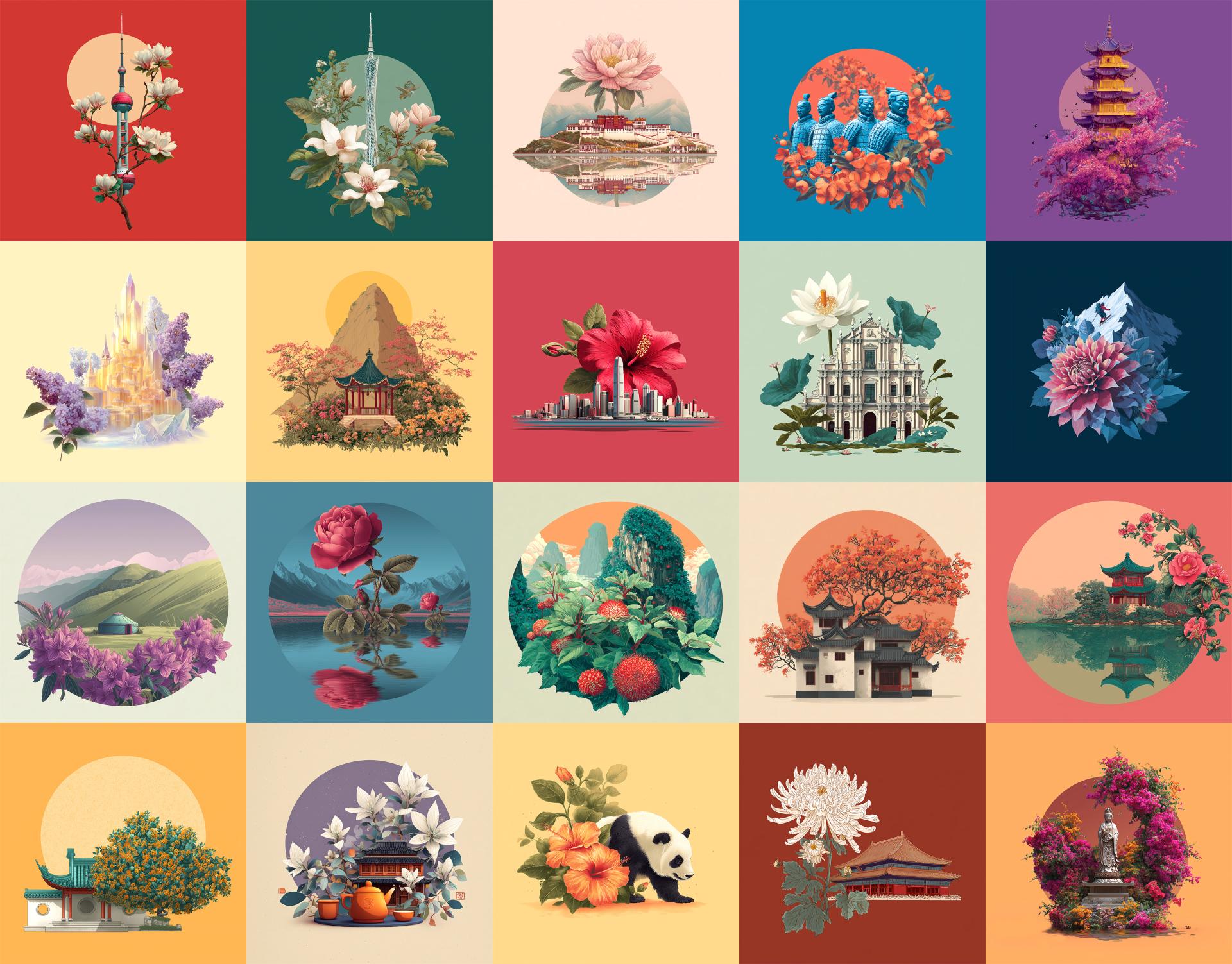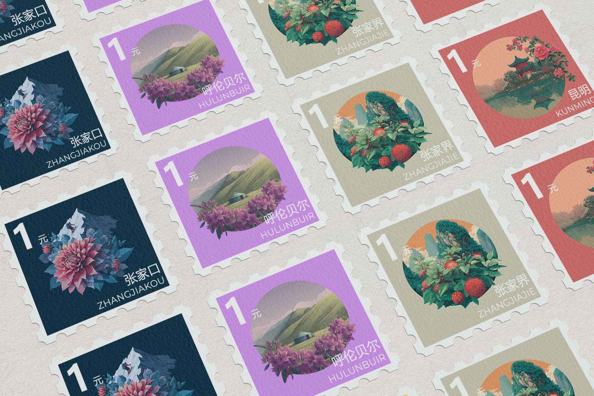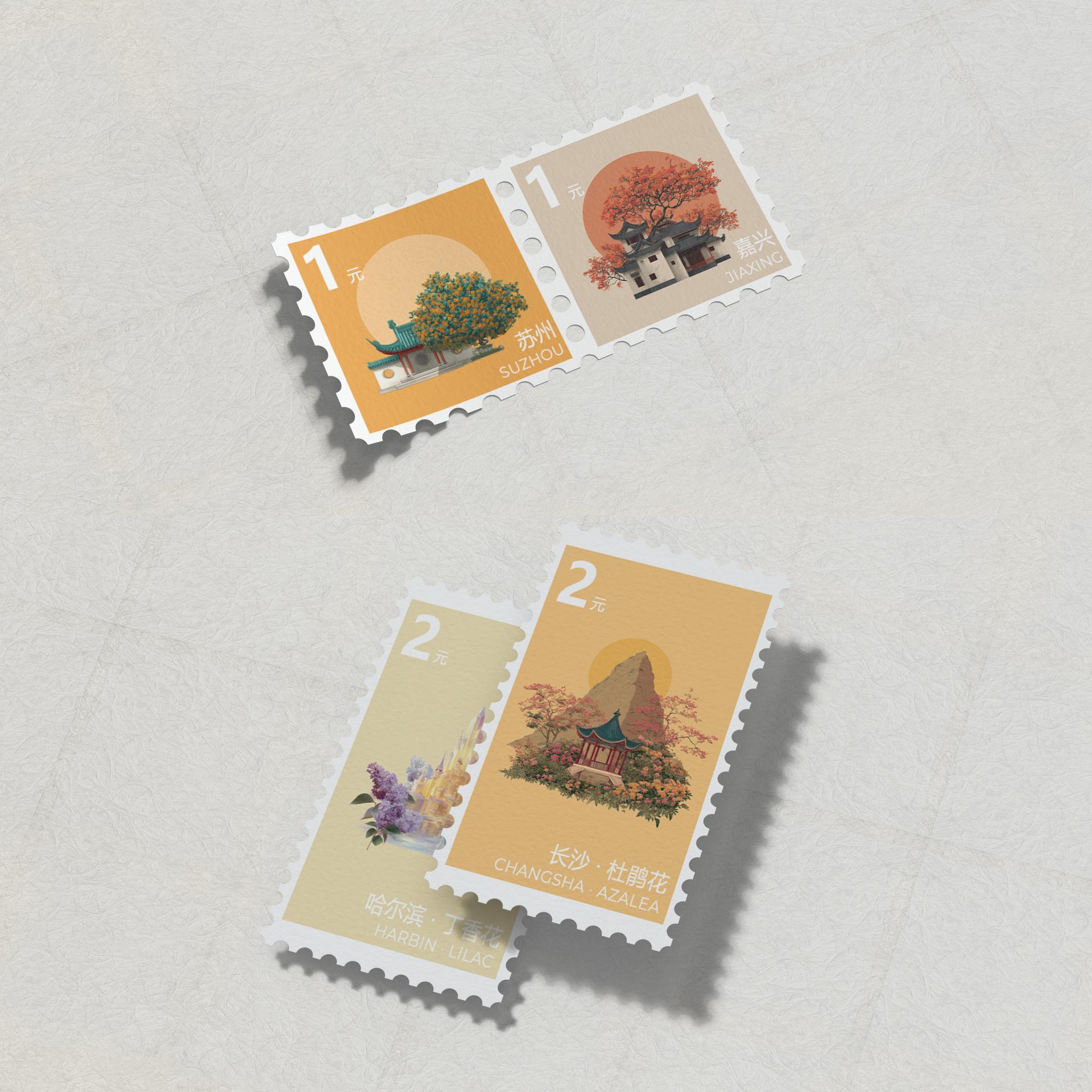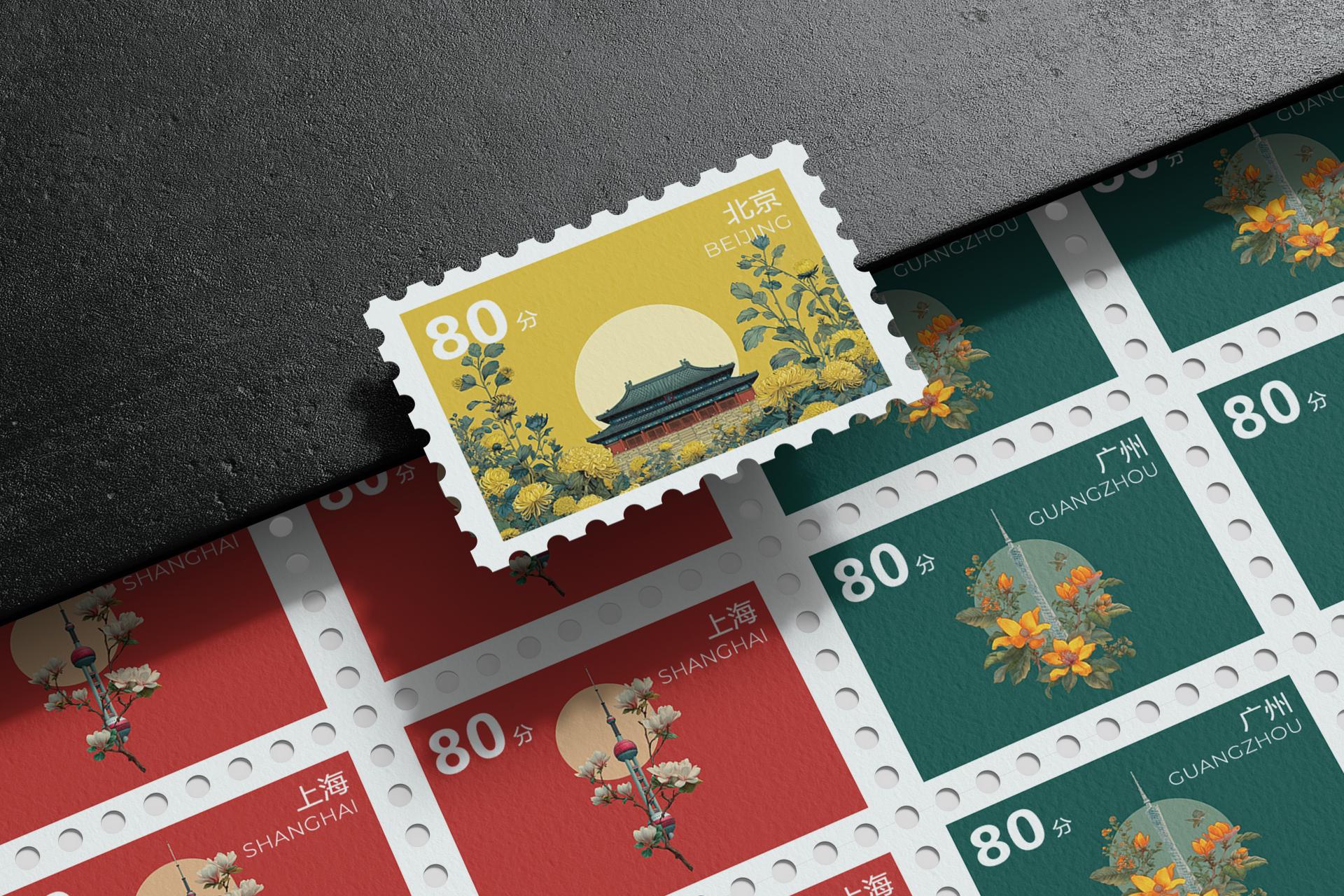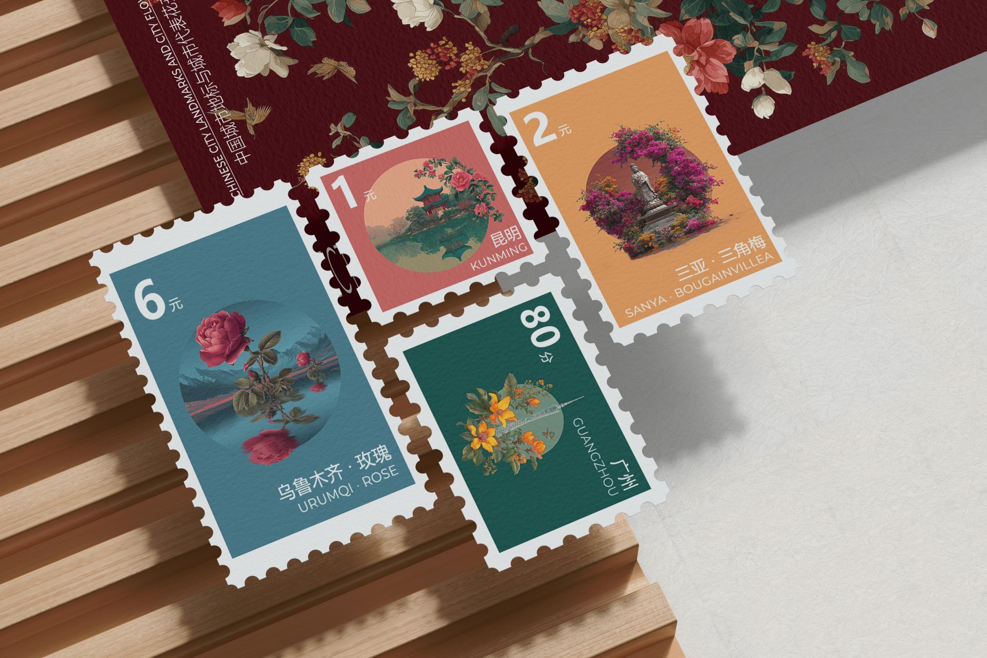 This stamp series consists of three denominations: 80 fen, 1 yuan, and 2 yuan, each presented in a distinct size according to postal convention. Every design combines a city landmark or representative element with its official flower. The forms are redrawn in simplified outlines and composed together within a shared frame. Colors are selected from recognizable features of each city, ensuring that each stamp carries a unique sense of place. The illustration style merges contemporary graphic drawing with techniques inspired by traditional Chinese painting, uniting natural motifs and civic icons in a single visual language.